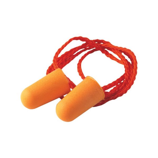 - 帶繩的耳塞柔軟、 防過敏泡沫和錐形的設計適合不同耳道